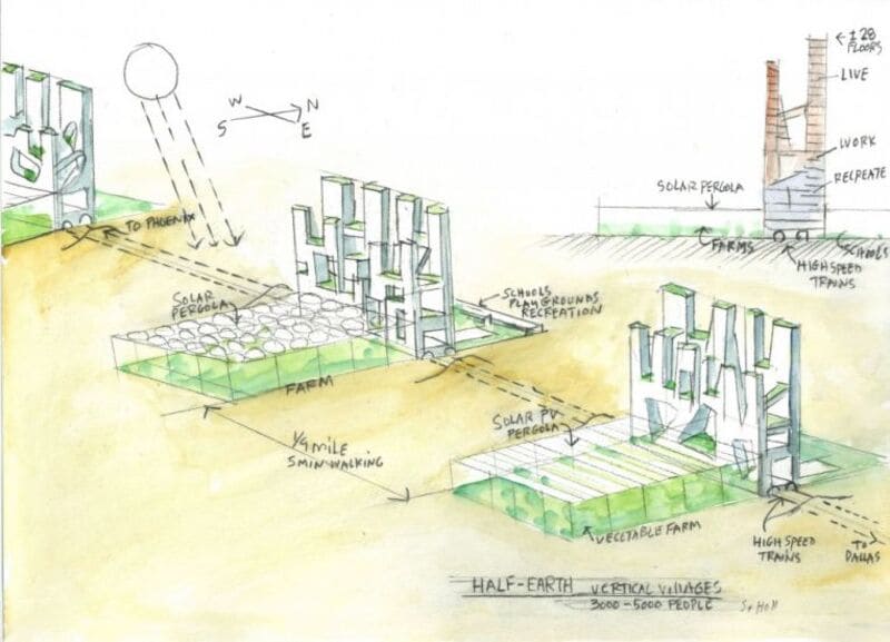 La mostra Half Heart si compone di progetti come Edge of a City (1988-1991), che mostra alcune soluzioni di recupero del paesaggio naturale ai margini delle grandi città americane, o Spatial Retaining Bars for Pheonix e Spiroid Sectors for Dallas, dedicati all'intenzione di costruire nuovi insediamenti comunitari. Questi ultimi, secondo l'architetto visionario e proiettato verso il futuro, dovrebbero essere riscaldati e raffreddati geotermicamente, includendo al loro interno vita, lavoro e attività ricreative o culturali.