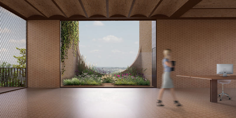 Meiken Lamwood Corp. Head Office, NKS2 architects Partner, Maniwa city, Japan, 2020 • MOL Headquarters - Kinzo and Foster and Partners, Budapest Hungary, 2022 • Low-tech offices for Leiedal, C+S, Kortrijk Belgium, lavori in corso • Tech Office Cyprus, zikzak architects, Limassol Cyprus, 2022 • Cidade BI4ALL - Pedra Líquida, Lisboa Portugal, 2021 • Office and commercial building - Raphaël Boscarato Urban Cavity, 2023 • Fendi Factory - Piuarch, Bagno a Ripoli Firenze Italy, 2022 • Barry Callebaut Headquarters - Evolution Design, Zürich Switzerland, 2022 Digital Garage Tokyo - Snøhetta, Tokyo Japan, 2019 • BEEAH Headquarters - Zaha Hadid Architects, Sharjah United Arab Emirates, 2022 Le Monde group Headquarters - Snøhetta, Paris France, 2020 • Powerhouse Telemark Corporate office - Snøhetta, Porsgrunn Norway, 2021 • Google Bay View - Heatherwick - ARUP, Mountain View California USA, 2022 • Awaji Factory - OHArchitecture, Hyogo Japan, 2019 • National Centre of Art, Crafts and Design - Ramos Castellano arquitectos, Capo Verde, 2022 • Wolfson Centre for Applied Health Research - ADP Architects, Bradford Great Britain, 2019 • Design that saves lives: structural safety assessments of textile factory buildings in Bangladesh, Arup • Complementi d'arredo designer Michele Scarpa prodotti da BM arredo • Trametes l'equilibratore acustico biomimetico, SKEMAidea design architetto Franco Driusso • Evolouzione della sedia per l'ufficio partner Castelli e Herman Miller.