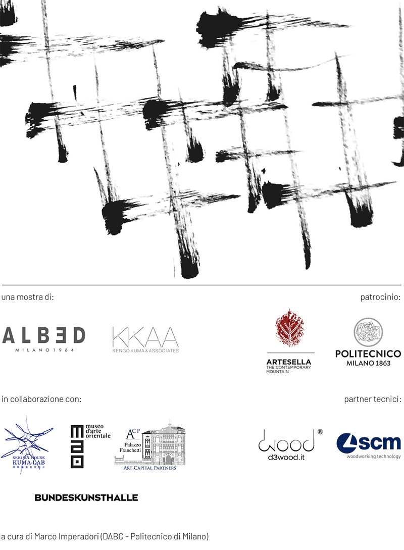 L'evento di Albed e KKAA, a cura di Marco Imperadori (Dipartimento DABC), è patrocinato da Politecnico di Milano e Artesella, realizzato in collaborazione con SEKISUI HOUSE - KUMA LAB at The University of Tokyo, MAO Museo d'Arte Orientale di Torino, ACP - Art Capital Partners e Bundeskunsthalle. Partnership tecnica D3Wood e SCM.