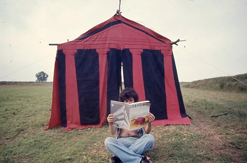 Entra in scena una roulotte, attraverso la quale si accede a una grande tenda nella quale sono rappresentate le diverse anime della carriera di Franco Raggi. Da un lato quella di architetto e progettista, esplicitato da una costruzione a pannelli contenente una serie di fotografie dedicate al suo lavoro con lo spazio, tra cui case e architetture d'interni e da una sezione con alcuni oggetti, come lampade, sedute e complementi d'arredo; dall'altro il suo impegno nell'ambito delle riviste, che mette in primo piano le copertine di "Casabella" e "MODO", oltre a disegni, taccuini ed estratti dalla sua vastissima produzione scritta.