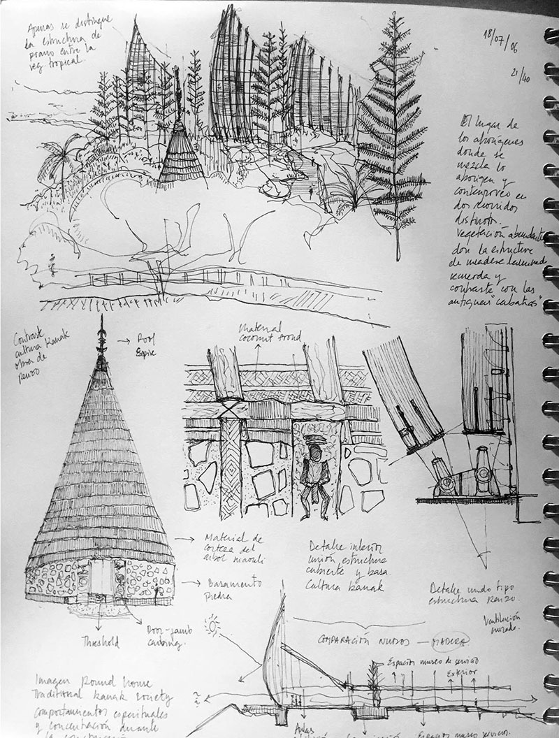 Dall'Opera House al Botanical Garden, dall'Aurora Place alla Bondi Beach, fino al Tjibaou Cultural Center a Nouméa. Gli acquerelli, le foto, il taccuino di schizzi e pensieri di Thomas, Ioanna e Ricardo continuano ad accompagnare questo viaggio giorno dopo giorno, e attraverso questa serie di "cartoline" provano a raccontarci questa porzione di terra australiana e la New Caledonia.