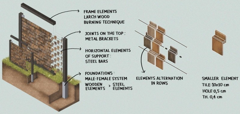 La forza motrice è il vento e lo strumento musicale è l'installazione stessa. Le tessere di diverse essenze avranno una diversa densità e peso specifico, così da emettere suoni differenti. Il legno, deperibile, col tempo tornerà alla terra. L'installazione - è l'idea lanciata dai progettisti - potrebbe essere realizzata nelle foreste a rischio nel mondo, come simbolo per sensibilizzare le coscienze rispetto al tema della preservazione degli ecosistemi forestali.