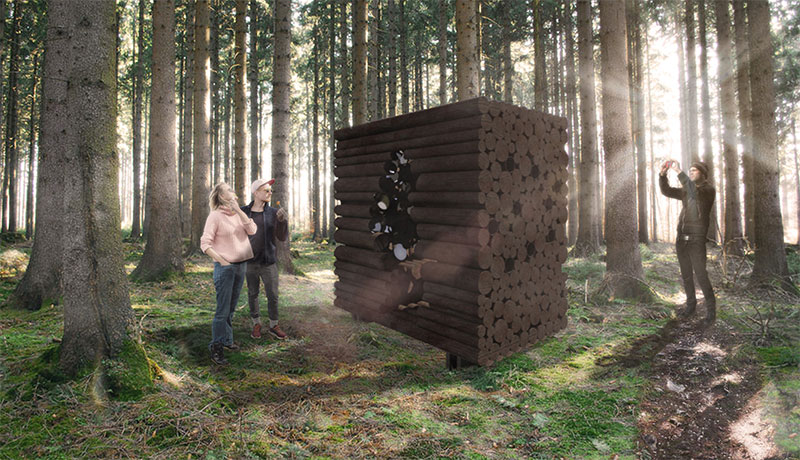 Entrare nel cuore di un tronco è l'azione che dà forma ad uno spazio simbolico in cui meditare sul principio buddista. L'installazione si compone prevalentemente di tronchi di legno che lasciano spazio ad una cavità in cui si colloca una seduta. «Si induce il visitatore non solo ad una riflessione, ma anche ad un'interazione spinta con l'elemento naturale, che è anche opera d'arte», spiega ancora l'architetto dello studio MC A. Nello spazio interno è presente una serie di specchi incollati sulla faccia di alcuni tronchi. Seguono diverse inclinazioni così da riflettere in modi diversi la natura circostante e l'utente.