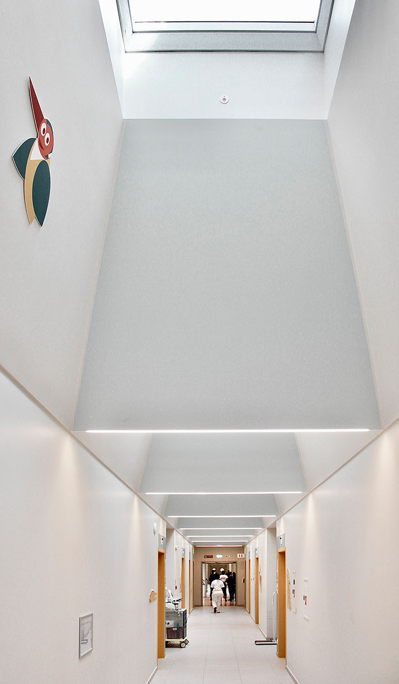 "Il risultato di eccellenza progettuale e medica da vita alla healing architecure, l'architettura che guarisce. Questa idea è stata uno dei principi fondativi del lavoro: l'ospedale si trova a quasi 1200 metri di altitudine, in un luogo salubre ed immerso nel verde. La luce naturale, le grandi finestre, l'acqua e i giardini aiutano il compito della medicina, impattando sia sull'aspetto fisico che psicologico dei pazienti, rendendo più rapidi i processi di guarigione e più brevi le degenze".