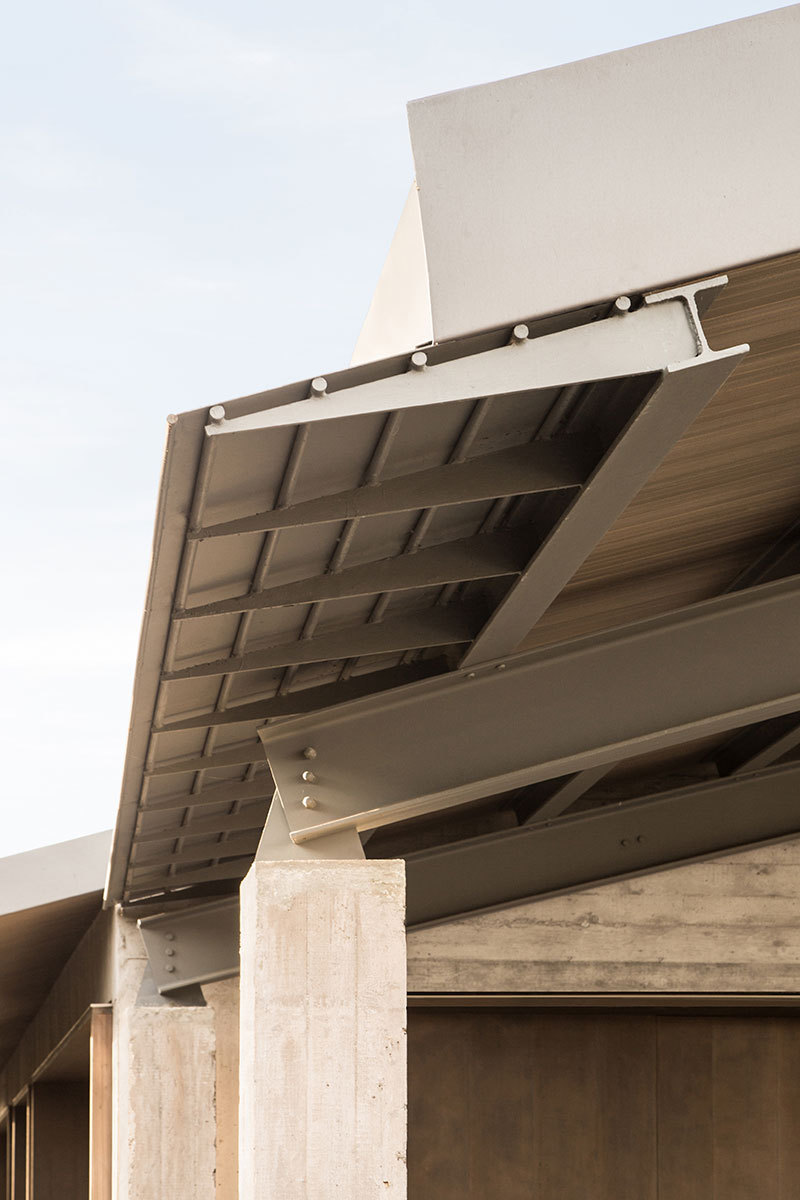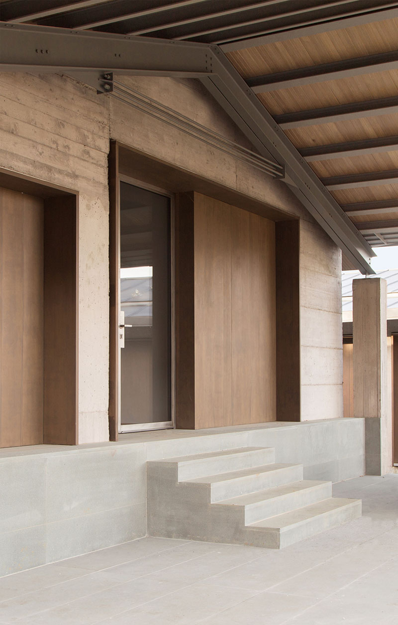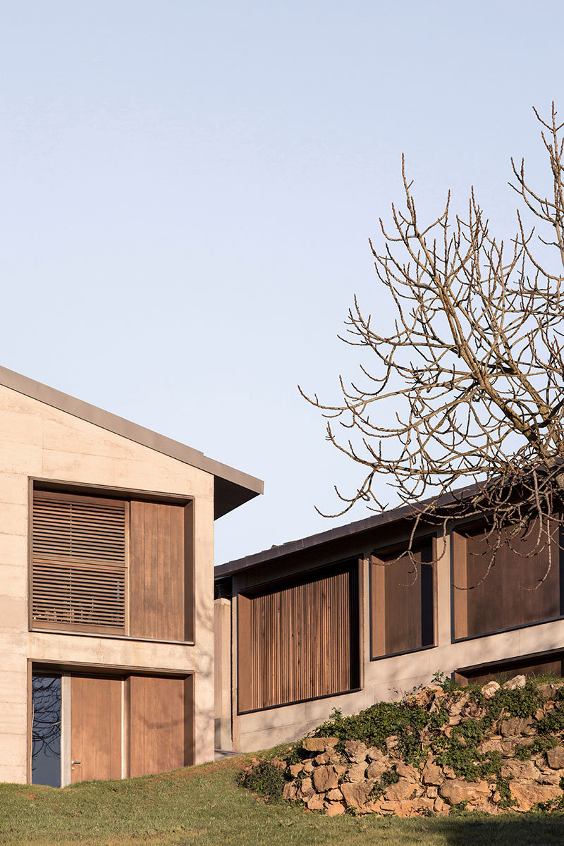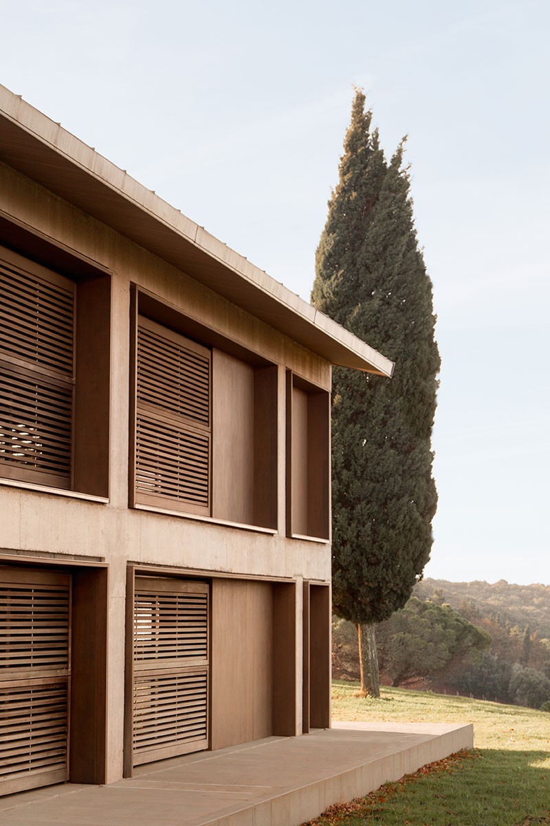 Nel pieno rispetto della sostenibilità ambientale e della tutela delle risorse del territorio, il progetto mantiene le volumetrie esistenti, esaltando l'aspetto brutalista del cemento non rifinito attraverso il gioco di contrasto innescato dall'eleganza delle finiture, come quelle del sotto gronda e del soffitto della veranda in cedro ossidato e i dettagli di scale, parapetti e veranda in acciaio verniciato.