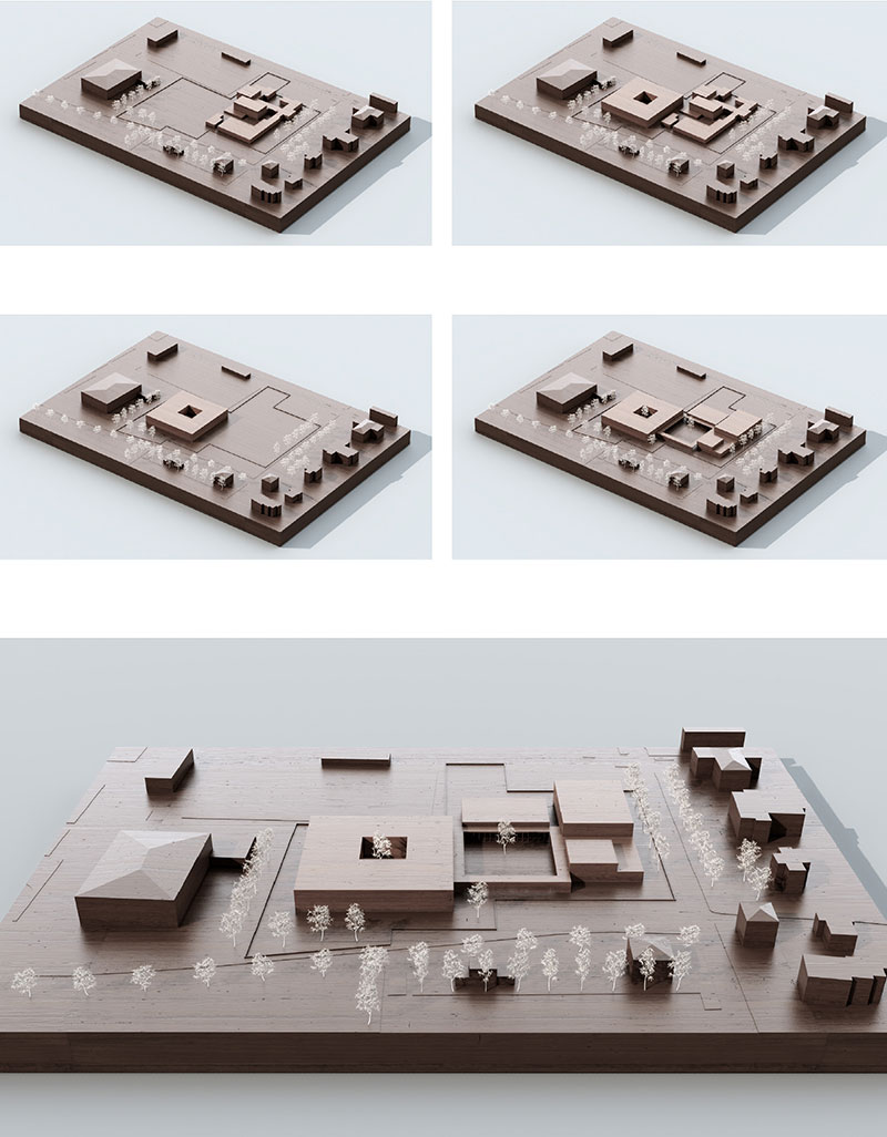 Il posizionamento e la struttura dei tre volumi tiene conto della possibilità di realizzazione del campus in più fasi, al fine di minimizzare il disagio e l'impatto sulla popolazione scolastica.