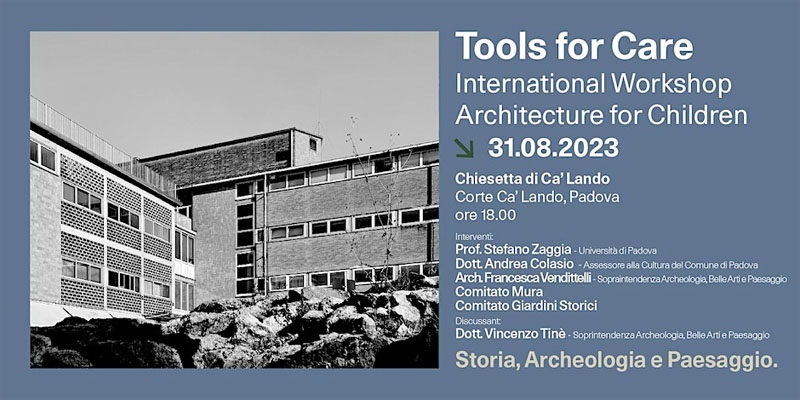 L'architettura ha storicamente un ruolo sociale importante ed è sempre più urgente il suo coinvolgimento nella creazione di spazi che migliorino la qualità della vita di tutti, in maniera inclusiva e trasversale, aperta e dignitosa, con amore e cura. E a proposito di cura, questo è l'ambito di azione delle iniziative organizzate dalla Fondazione Salus Pueri e dall'Università degli Studi di Padova che si svolgeranno dal 27 agosto al 10 settembre in diversi luoghi della città. Per farlo sono stati organizzati 5 incontri aperti a tutta la cittadinanza e il workshop internazionale di architettura "TOOLS FOR CARE".