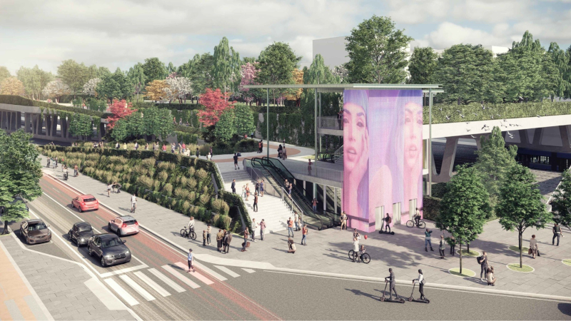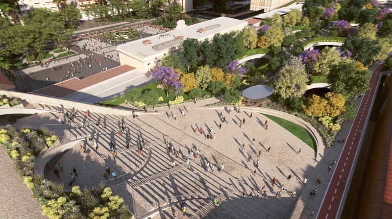 Il Nodo verde prevede la realizzazione di una piastra dotata di un nuovo parco urbano arricchito da servizi fruibili dalla comunità e da nuovi percorsi ciclabili e pedonali.