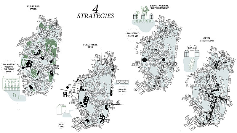 Il duo spagnolo parte dall'individuazione di un catalogo di problemi, sviluppando parallelamente le relative azioni e soluzioni. L'approccio mostra una prospettiva ampiamente strategica e realizzabile per costruire il processo di rigenerazione della città, configurandosi come una forma di agopuntura urbana che permette di rispondere alle singole criticità in maniera puntuale.