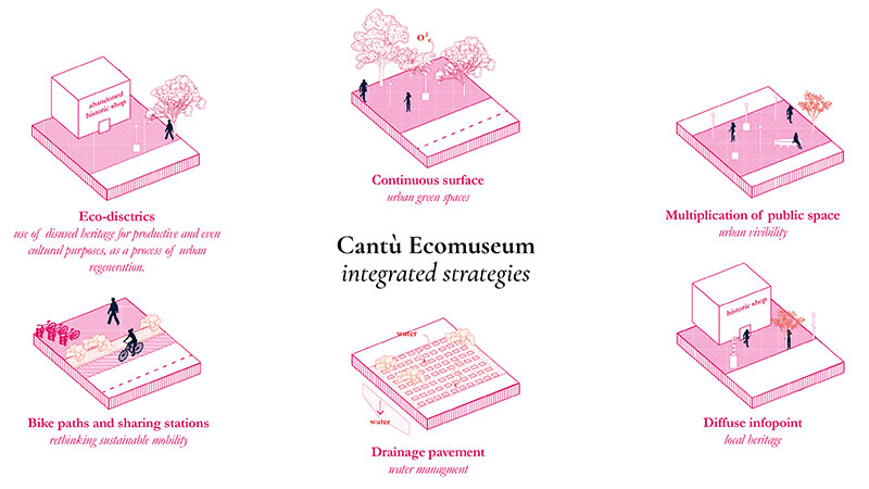 La scelta della forma e del materiale del dispositivo di agopuntura urbana, inoltre, rimanda alla tradizione e alla storia di Cantù, riattualizzandola e rendendola attrattiva anche per i flussi turistici.