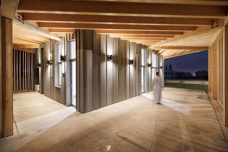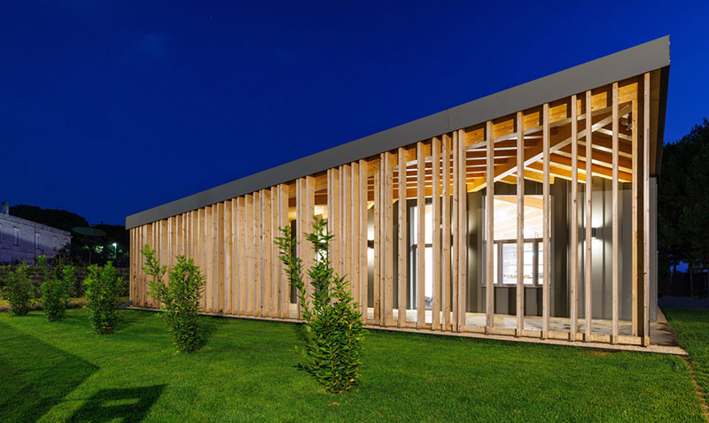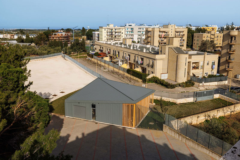 Un edificio in legno e acciaio, semplice sia nella forma che nel processo di realizzazione, ma studiato in ogni dettaglio assecondando la filosofia progettuale dello studio, per essere quanto più adatto ad accogliere la funzione per cui era stato predisposto: la distribuzione di cibo per le famiglie bisognose e uno spazio per l'ascolto.
