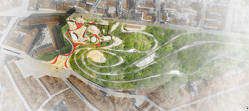 Connessioni, rifunzionalizzazione ed efficientamento erano infatti le parole chiave del concorso, da mettere in atto all'interno di un'area strategica per posizione e interesse cittadino, a ridosso di piazza Castello con l'accesso dal Parco dell'Isola Carolina, area storica ai piedi dell'edificio adibito a Questura.