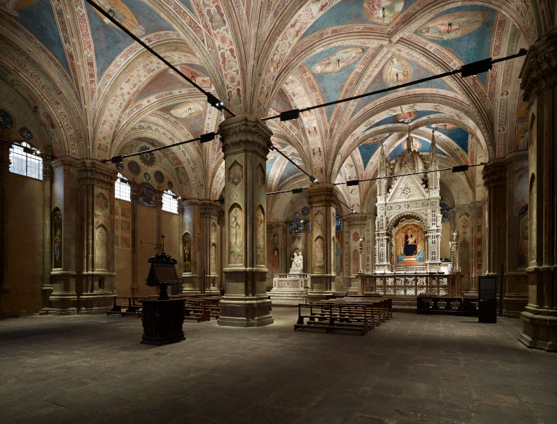 Al piano terra dell'edificio si trova la chiesa nata dalla Loggia del mercato del grano. «L'opera - scrivono gli architetti - necessitava di un intervento molto leggero che, con pochi tocchi, rafforzasse il suo legame con la città e recuperasse alla vista l'interno - una delle testimonianze più intatte di come le chiese medievali fossero completamente affrescate - che incornicia lo straordinario Tabernacolo dell'Orcagna e l'altare di Sant'Anna. Aprire i grandi portoni, ripulire l'aula da una serie di elementi tecnici stratificatisi negli anni e dare una degna illuminazione a questo luogo è stato il compito del progetto».