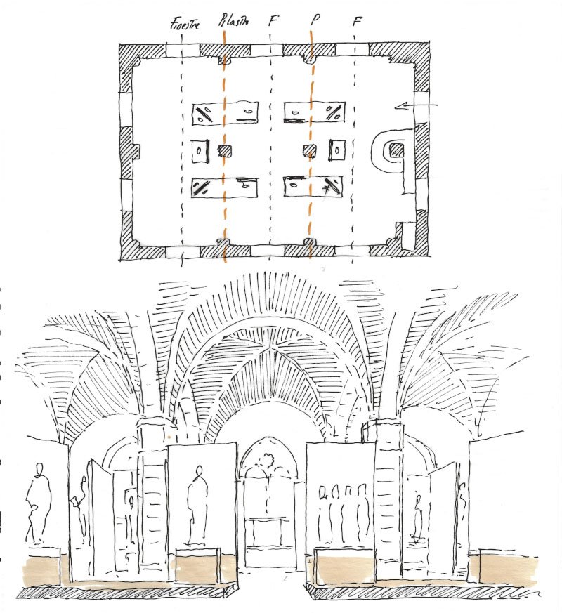 map architetti e Natalini Architetti, Nuovo allestimento della Chiesa e del Museo di Orsanmichele a Firenze. Disegno di Tommaso Barni.