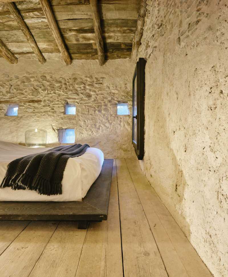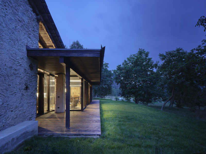 Punto di partenza del progetto è la piccola e tradizionale struttura agricola costruita in pietra e calce, che viene preservata nella forma e nei materiali. L'autenticità dell'edificio è salvaguardata attraverso mirati interventi di consolidamento. Va in questa direzione anche il rifacimento della copertura. L'intervento utilizza il «legno di recupero proveniente dalla valle Stura», specifica il progettista in una nota.