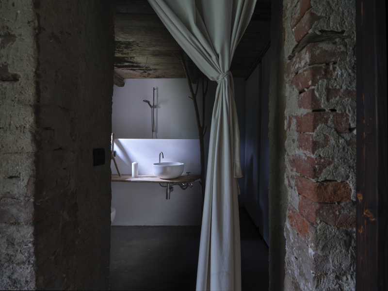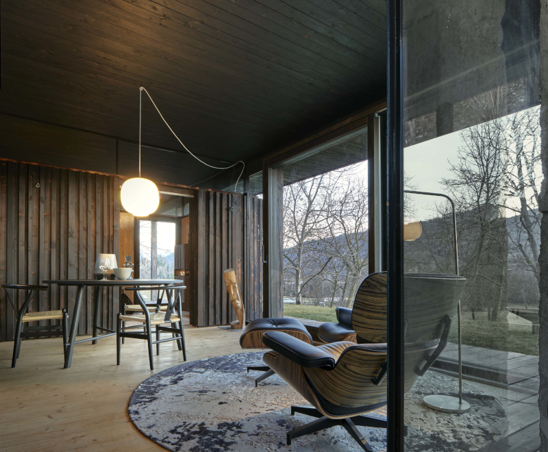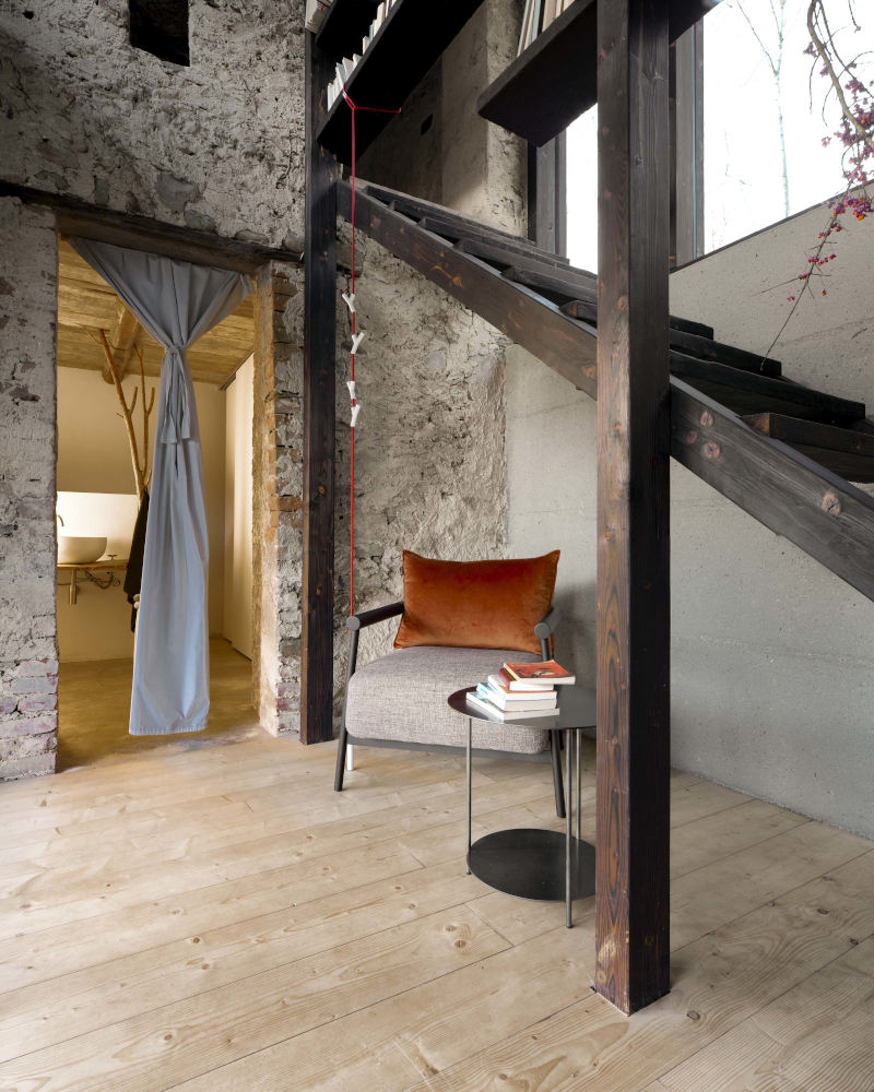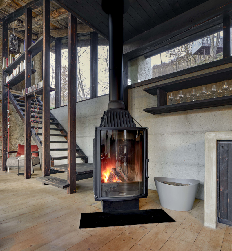 Il luogo è suggestivo: il "buen retiro" nasce tra i boschi affacciati sulla valle Stura a Roccasparvera, in provincia di Cuneo. Il progettista, Dario Castellino, ha una riconosciuta esperienza nella valorizzazione e riqualificazione di piccole borgate alpine, suoi i pluripremiati interventi nelle valli cuneesi a Paraloup e Campofei.