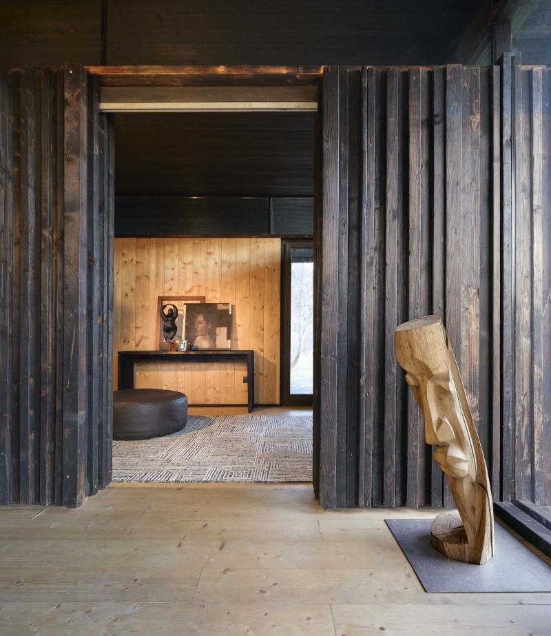 Distingue l'intervento anche l'impegno verso la realizzazione di un'abitazione a emissioni zero e la promozione delle risorse locali. Nel nuovo volume «è stato adottato esclusivamente legno proveniente dalla zona, stimolando positivamente energie ed economie locali», spiega il progettista nella nota. Per preservare il materiale è stata utilizzata «la tecnica giapponese Shou Sugi Ban, che conferisce maggiore resistenza agli agenti atmosferici, parassiti, acqua e persino al fuoco».