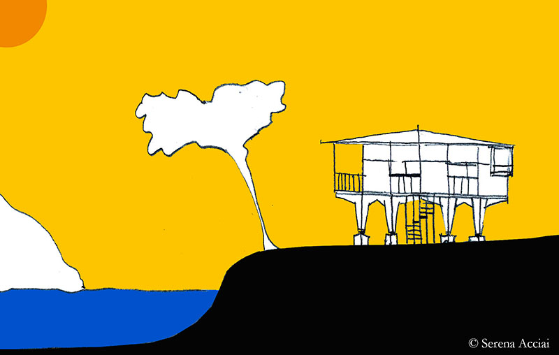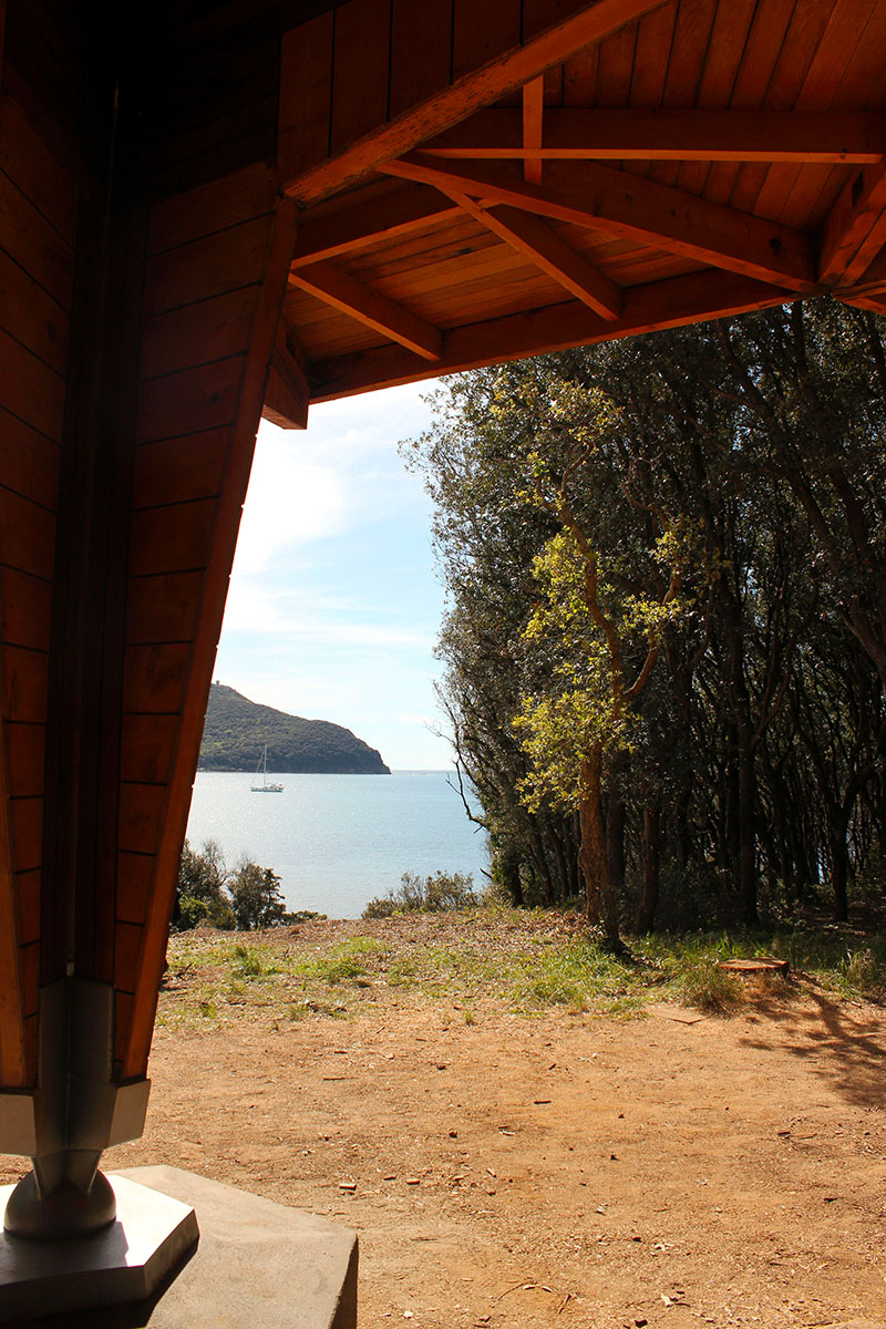 La modernità a Baratti significa sostenibilità e immersione nella natura e forse non è un caso che, sia Le Corbusier che Giorgini, in tempi non sospetti, abbiano scelto il legno come materiale per abitare nel Mediterraneo.