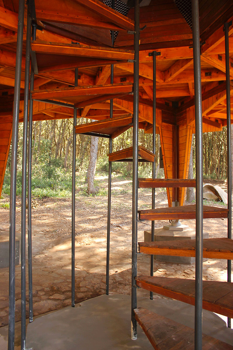 Il progetto di restauro, iniziato a luglio 2023, ha previsto la rimozione di elementi impropri (ad esempio la pesante verniciatura nera), un' indagine diagnostica su tutti gli elementi lignei e una vera e propria fase di consolidamento, che ha coinvolto tutta la struttura. Ad iniziare dal corpo scale di accesso (fatto di leggeri pilastri metallici che sostengono i gradini in legno a spirale), passando per la pavimentazione della terrazza agli elementi delle finestre "scatolari", fino al tavolato sottostante il manto metallico di copertura, anch'esso oggetto di intervento.