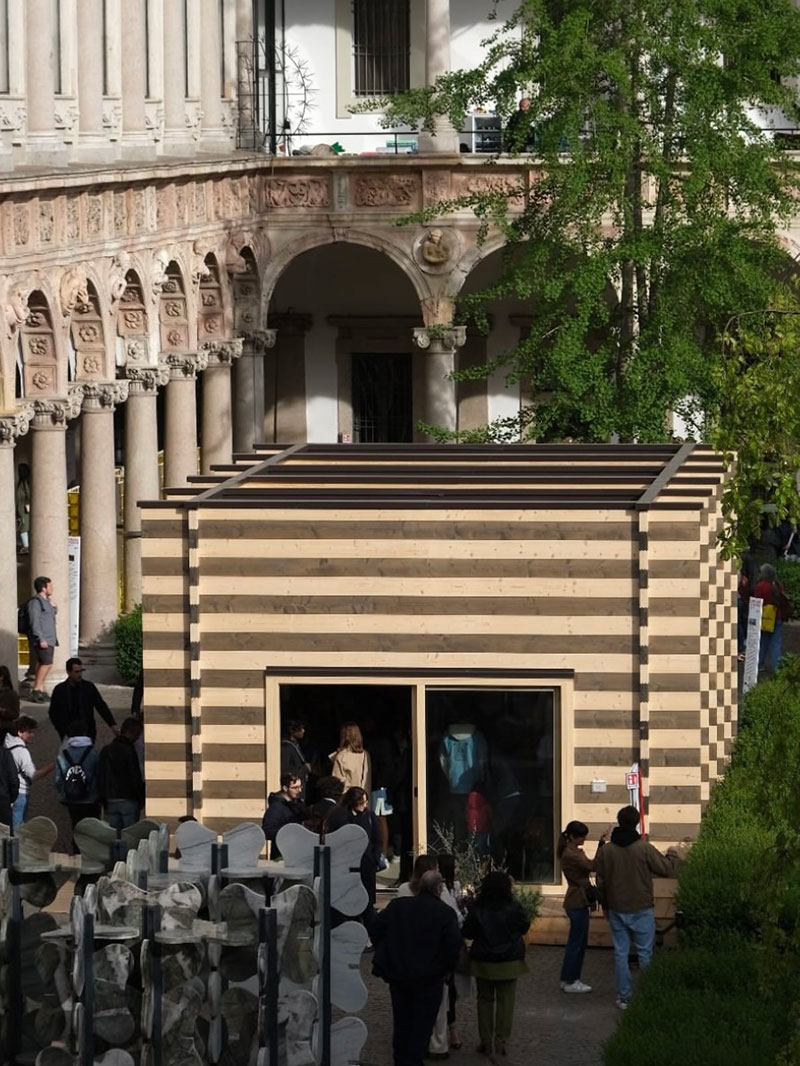 Sette giorni di vita condivisa e un percorso di co-progettazione che, con il supporto tecnico degli ingegneri di Rubner Haus, ha fatto prendere vita a una struttura basata sui principi di scomposizione, ricerca dell'essenza, ricomposizione, verifica e responsabilità sociale. I punti cardine del metodo albiniano diventano qui gli ingredienti principali di progetto, conditi dalla calorosa partecipazione del pubblico del Fuorisalone 2024!
