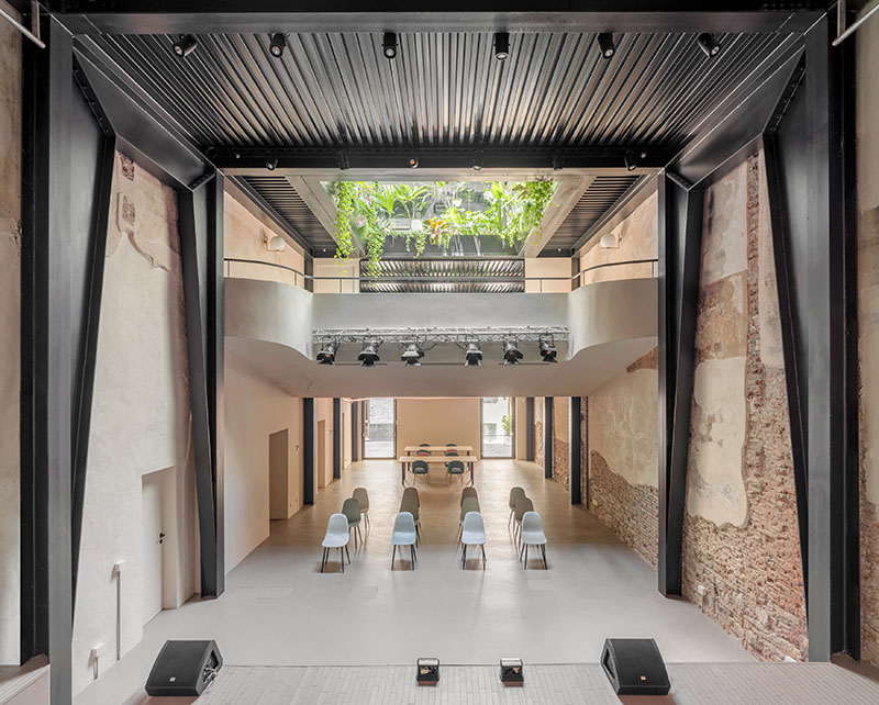 Uno degli obiettivi principali era portare la luce naturale nei locali bui del vecchio cinema: per questo è stato realizzato un grande patio coperto che diffonde la luce dal tetto fino alla sala principale del pianterreno, determinando scorci inediti e nuove prospettive degli spazi interni.