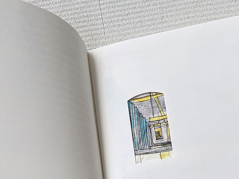 Concepito proprio come se fosse un'architettura in carta, il quaderno gioca con il filtro visivo della finestra, elemento che svela senza mostrare, stimolando la fantasia di chi osserva, per costruire dei paesaggi ipotetici, degli interni immaginati che rappresentano i primi accenni di spazi ancora da progettare in questo, o in altri mondi possibili.