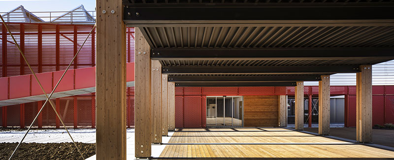 L'ampliamento curato da A_LM Atelier è caratterizzato da una piazza soprelevata appoggiata su un alto terrapieno che offre la possibilità di essere utilizzata per performances, concerti e proiezioni.