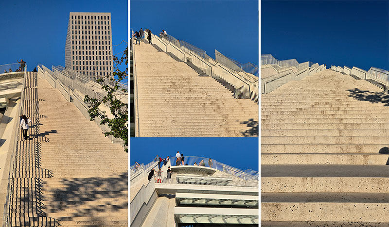 Anche l’iconica struttura piramidale esterna – da cui prende il nome – è stata interamente riqualificata, aggiungendo dei gradini e dei piani intermedi di sosta, che consentono alle persone di tutte le età di salire in cima all’edificio, da cui per altro si gode una vista incredibile, sul parco e sulle architetture circostanti.