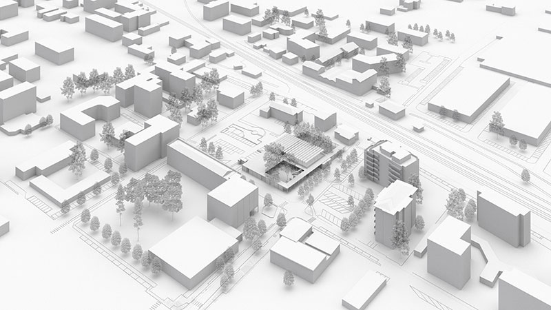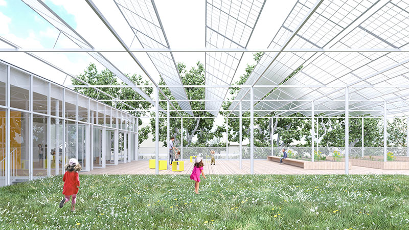 In questo modo la scuola si trasforma in una sequenza di nuovi spazi pubblici: una piazza, un giardino, un terrazzo verde pensile, strettamente connessi agli spazi laboratoriali interni, un segmento urbano di città a disposizione della collettività