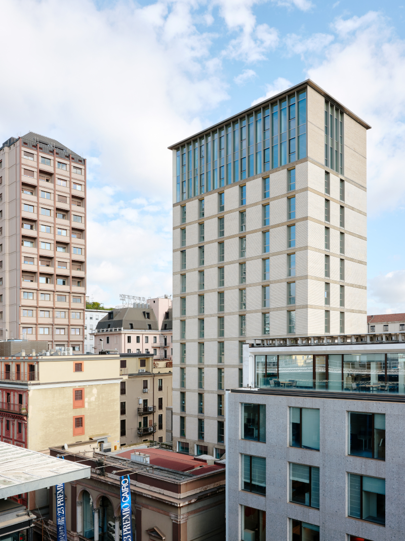 Una storia importante quella con cui si confronta lo studio Park Associati. «Un'accurata analisi storica e filologica ha guidato il progetto di riqualificazione, risanamento conservativo e ampliamento della torre», dichiara lo studio milanese, «un intervento che parte dall'ascolto del contesto, fortemente connotato da architetture coeve, e dal rispetto per l'identità e il valore architettonico dell'edificio originale».