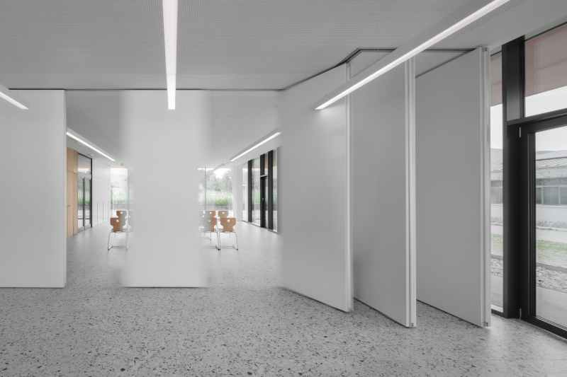 «La caratteristica principale di questo luogo - aggiungono allo studio Fds - è la permeabilità visiva tra i vari ambienti, che crea una sorta di paesaggio interno. Il progetto ricerca la coincidenza di forma, struttura e materia. Lo fa attraverso un guscio di calcestruzzo facciavista realizzato con una tecnologia in prefabbricazione avanzata che, oltre a non aver bisogno di ulteriori strati di finitura, contiene già la coibentazione e le predisposizioni impiantistiche».