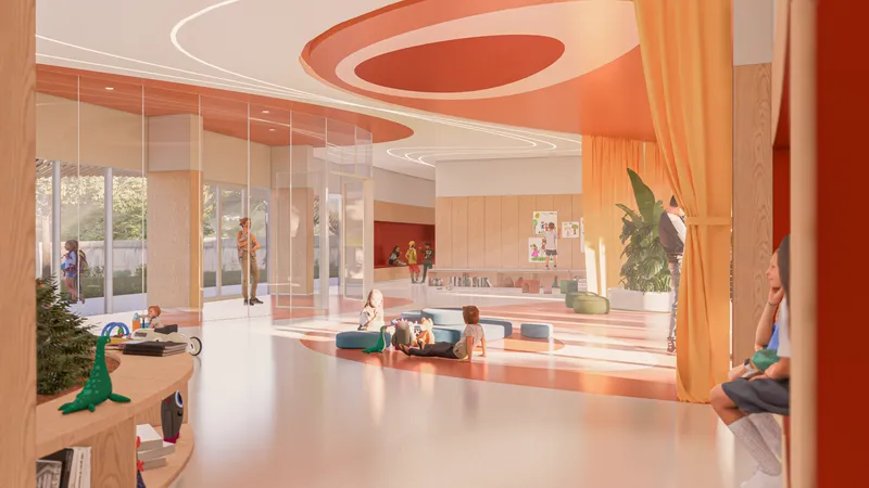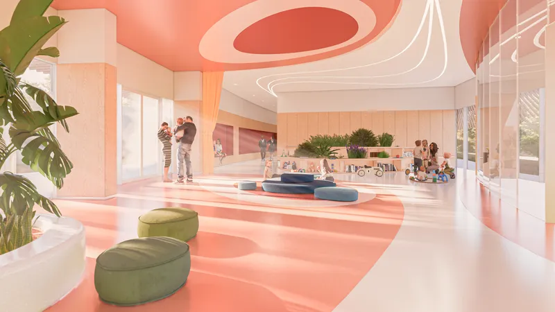 Il progetto rievoca fantasie geometriche morbide e cromie che permettono alla luce di creare atmosfere diversificate per le diverse età. La componente dinamica è evidente anche dall'esterno, con il rivestimento in listelli di alluminio verticali, ispirato alle collane di peperoni dolci, che garantisce l'illuminazione ideale durante le ore della giornata.