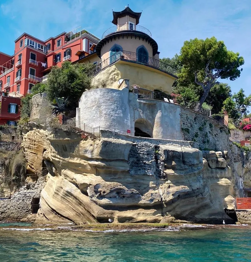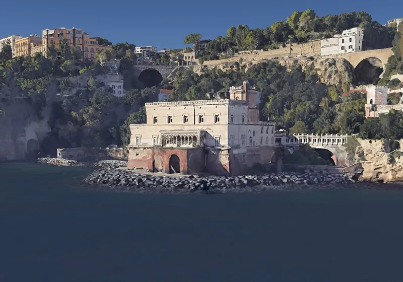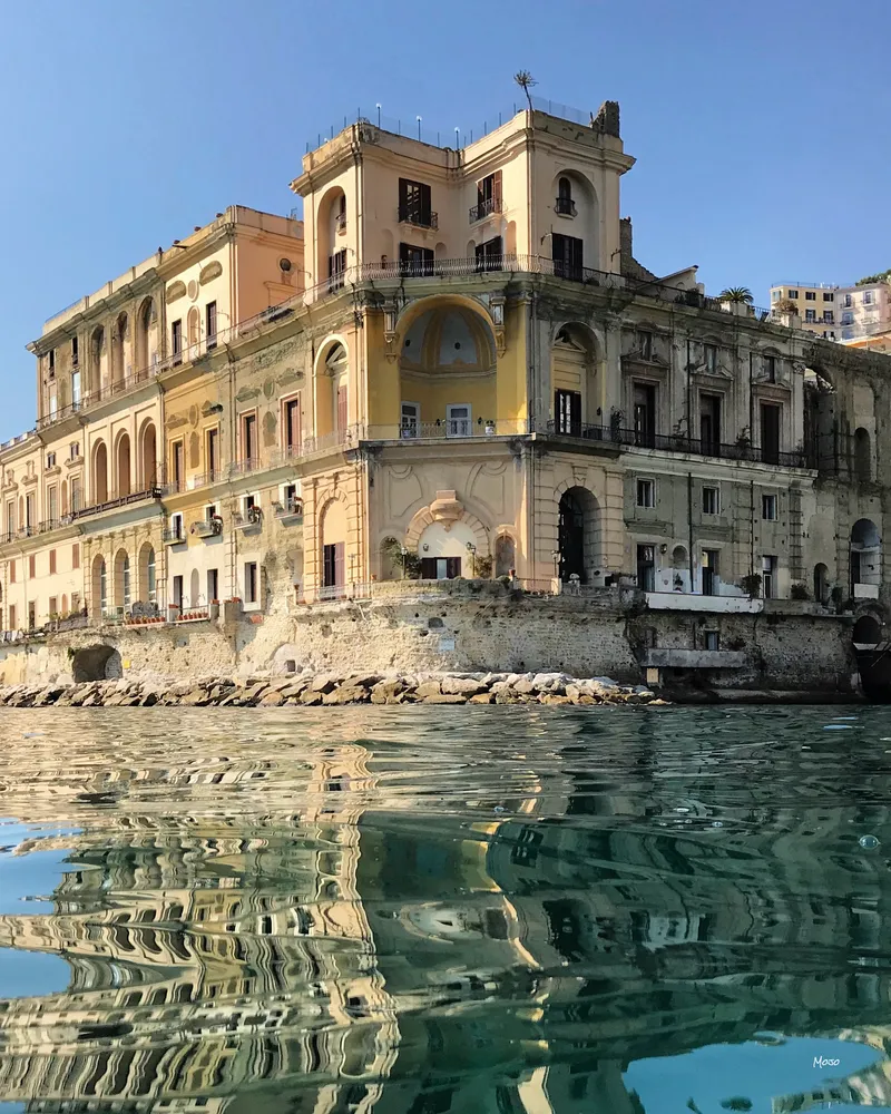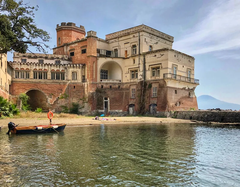 Scavato nel tufo e abbracciato dal mare, il palazzo seicentesco sembra quasi nascere dalle onde stesse del Golfo di Napoli. Il progetto di Cosimo Fanzago, ispirato dalle architetture che si affacciano sul Canal Grande di Venezia, riflette una tensione tra l'incompiuto e l'imponente.