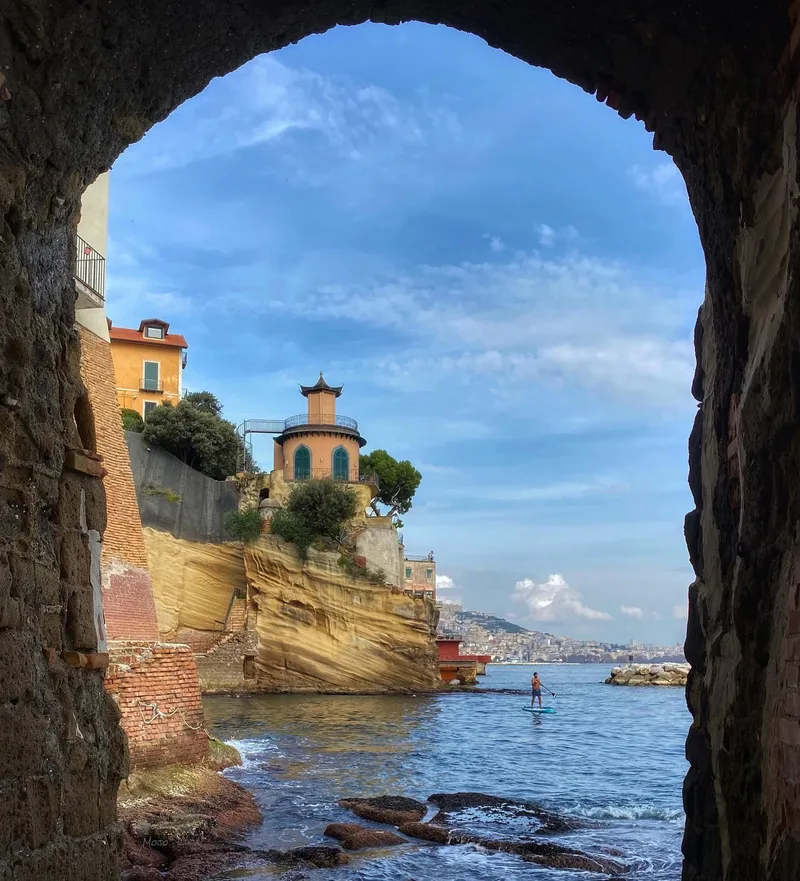 Il nome del quartiere Posillipo deriva dal greco Pausilypon, cioè "sollievo da ogni dolore", scelto da Pollione durante il I secolo a.C., come se la bellezza di questo angolo di Napoli fosse un rimedio per i mali dell'anima. Da qui, si può vedere nitidamente l'isola di Capri, in un gioco continuo di sguardi che si intrecciano tra le due località. Un legame che non è solo visivo, ma che racchiude anche una connessione simbolica tra due luoghi la cui bellezza non può che riflettersi l'uno nell'altro.