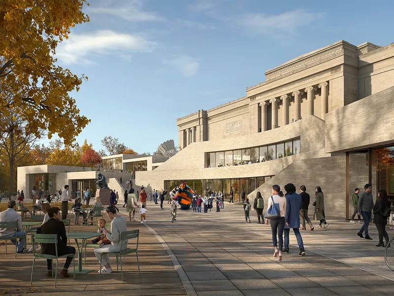 Le gallerie nuove e quelle esistenti, gli spazi ampliati per istruzione, spettacoli, eventi e ristorazione si affacciano tutti sul reinventato Sculpture Park, creando nuove connessioni visive tra architettura e paesaggio, arte ed ecologia, per invitare la comunità a impegnarsi nella scrittura di un nuovo capitolo del polo culturale.