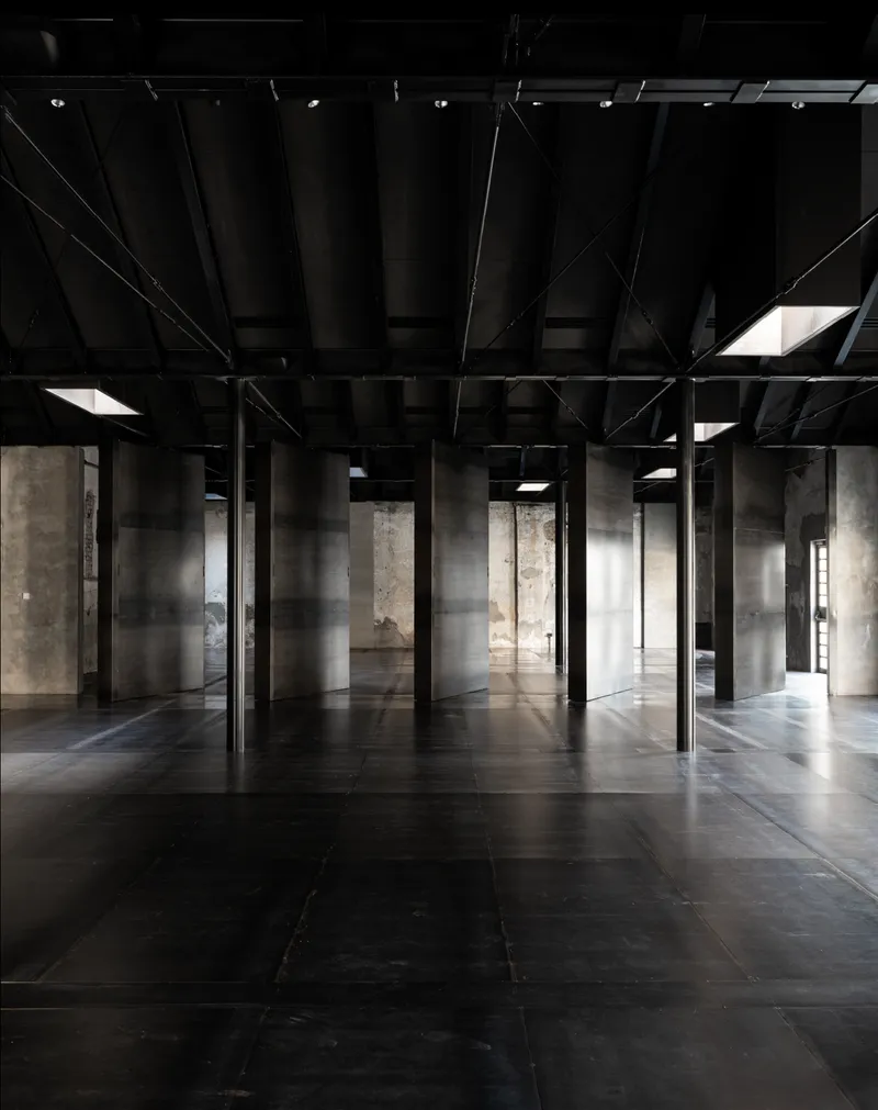 La sua superficie, di quasi 900 mq, ha visto la demolizione del tetto originale, ricostruito seguendo pedissequamente la forma della copertura originale a shed in ferro, un materiale che si ritrova anche nei grandi parallelepipedi che compongono i nuovi lucernari calati dalle falde inclinate del tetto. Le pareti sono lasciate grezze, mentre un sofisticato intervento impiantistico è stato integrato nella nuova copertura, per garantire funzionalità senza comprometterne l'estetica.