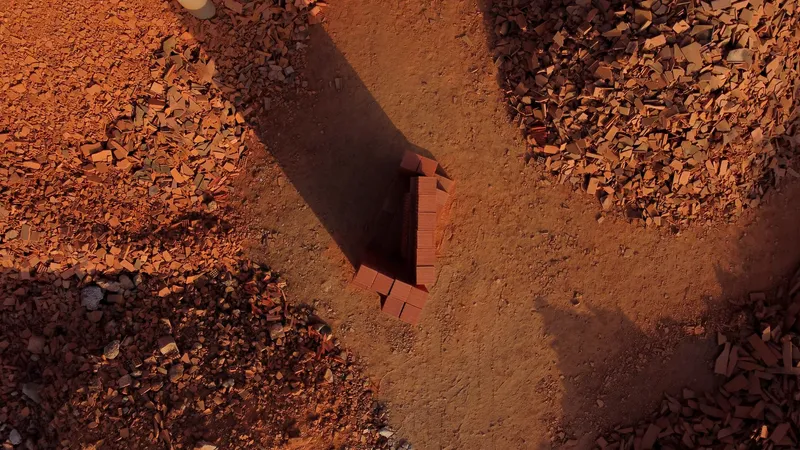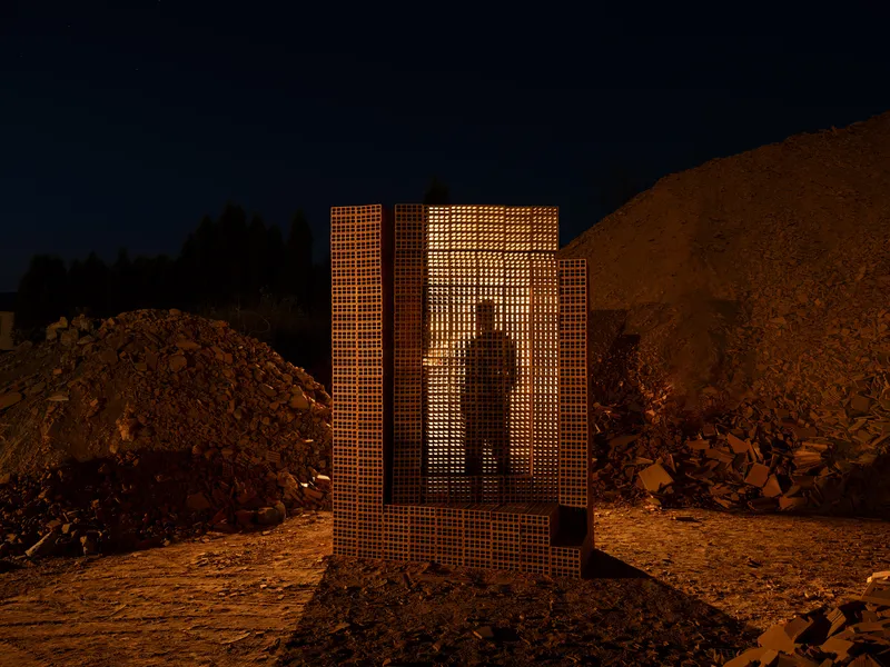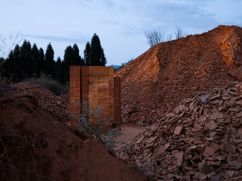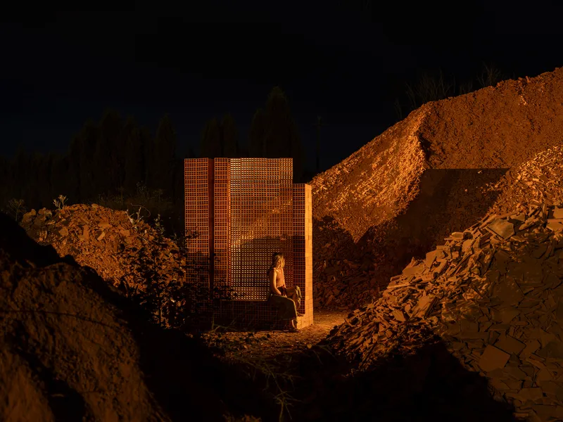 L'opera si colloca tra due diverse cave di materiali: una è naturale, di argilla; l'altra è di natura umana, costituita da grandi frammenti di materia che si ergono come montagne, svelando scenari in cui la rovina è essa stessa paesaggio.