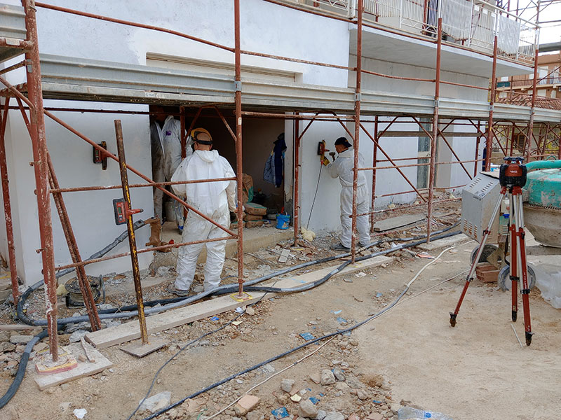 In questo cantiere l’intervento è stato eseguito su tutto il perimetro dell’edificio ma sono state escluse le murature interne, in quanto non interessate dai cedimenti della fondazione.