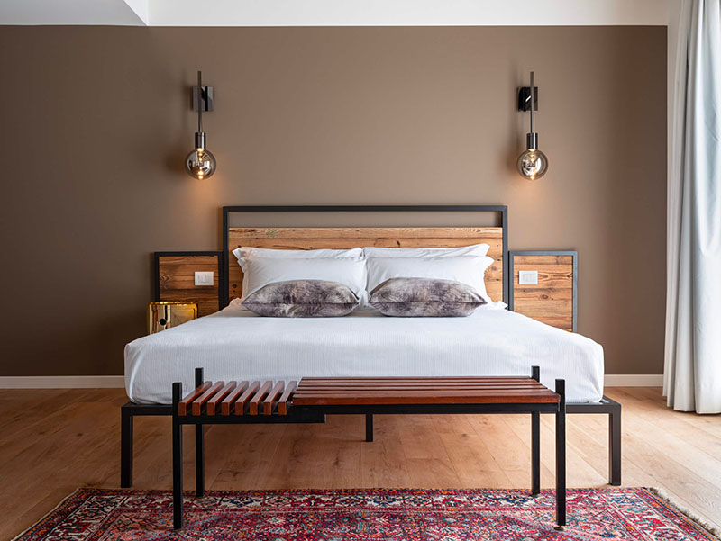 Al piano superiore sono state studiate cinque suite indipendenti che portano nomi ispirati al paesaggio naturale: Acqua, Foglie, Cielo, Terra e Sabbia. Ciascuna è caratterizzata da un design unico, con elementi d’arredo disegnati su misura o recuperati e restaurati.