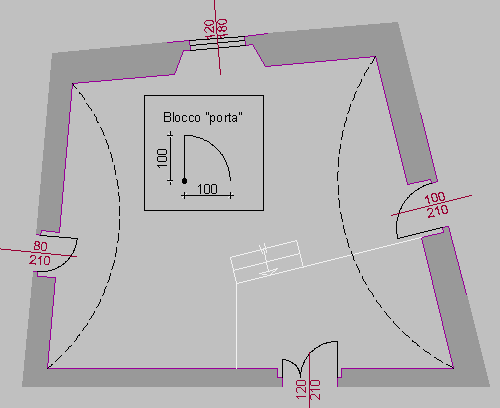 Creare un blocco denominato “porta” ed inserirlo a scala opportuna per ciascun infisso.