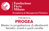 Accademia di Management Fieristico di Fondazione Fiera Milano ha creato PROGEA, primo Master in Italia finalizzato a formare figure professionali preparate e competenti nella gestione del processo di ideazione, progettazione e realizzazione di aree espositive e eventi.