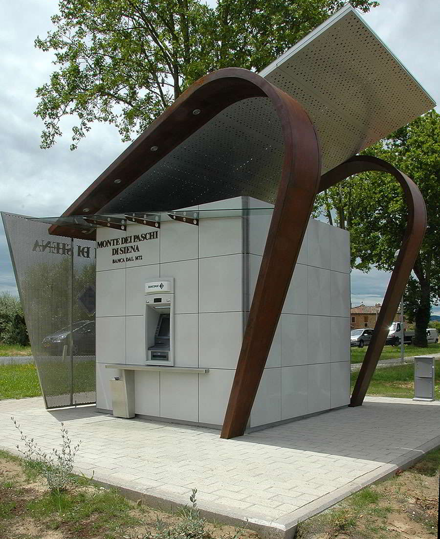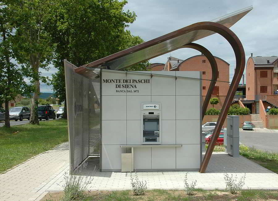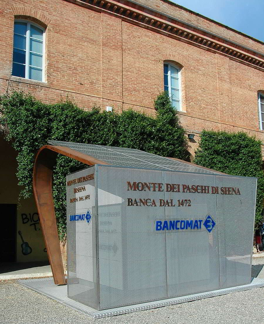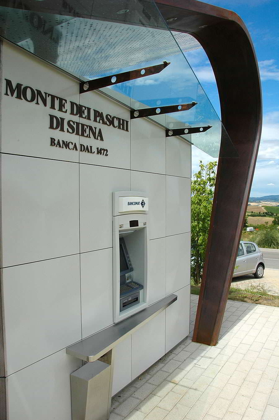 Alla luce della politica socio ambientale adottata da alcuni anni dalla Banca MPS, il progettista (architetto Franco Biondi) ha cercato di conferire alla postazione dei contenuti che andassero al di là della mera funzionalità e del rapporto con il contesto circostante.