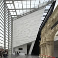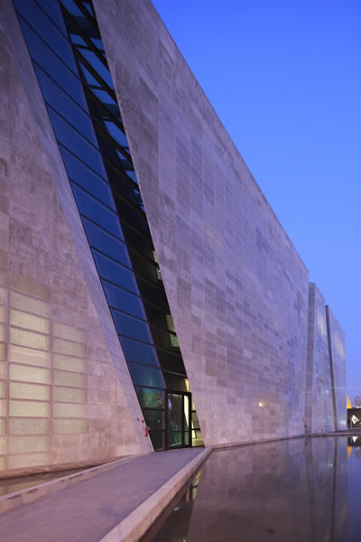 Le lastre sono fissate meccanicamente a profili in alluminio inseriti nelle strutture in acciaio che compongono l'architettura del padiglione. Le superfici traslucide sono un'eccellenza del Centro ricerche di Italcementi e dell'Università degli studi della Sapienza di Roma che hanno sperimentato il "conglomerato trasparente". I 3.774 pannelli 500x1.000x50mm, con un grado di trasparenza variabile tra il 20% e l'80% della propria superficie, sono realizzati con 189 tonnellate di "cemento trasparente" e ricoprono una superficie complessiva di 1.887m2, circa il 40% del totale del Padiglione, creando una sequenza di luci e ombre in fieri nel corso della giornata. L'impasto utilizzato ha le caratteristiche e la fluidità necessarie per fissare nei pannelli le resine, che consentono il trasporto ottico della luce e delle immagini senza comprometterne le caratteristiche di isolamento e di robustezza tipiche del materiale a base cementizia.