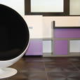 Il rapporto oggetto-giocattolo diviene allora strettamente dualistico: non può essere un semplice contenitore di oggetti, deve essere un giocattolo che contiene altri oggetti-giocattolo (una sorta di "matrioska"). Allora non sono estranei gli oggetti-giocattolo come il flipper, o l'altalena, o la poltrona uovo: sono giochi per il rilassamento, sono giochi di lavoro. Così è anche per la sala riunioni, dove sedie color cielo pastello campeggiano in uno sfondo arancio, dove il mobile appeso alla parete diventa il gioco cinese dello shangai posto orizzontalmente.