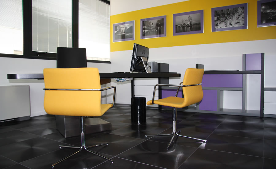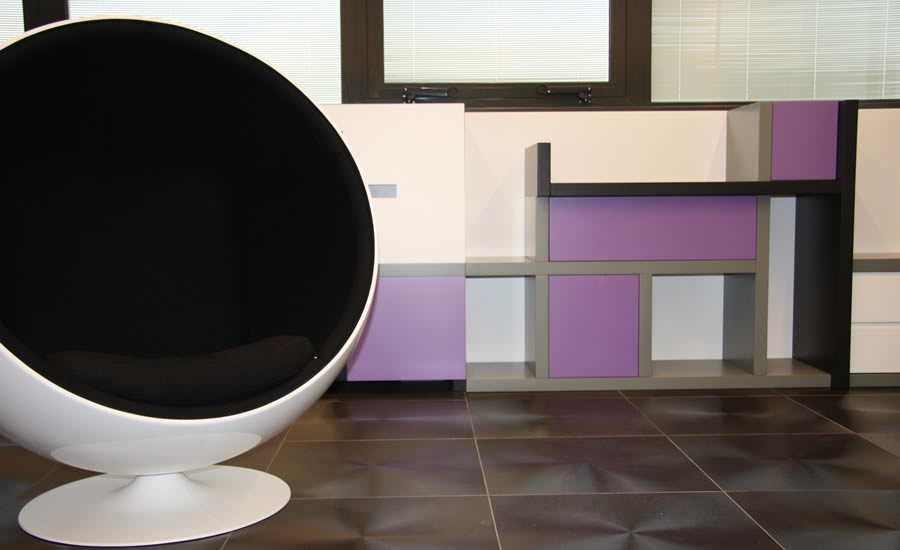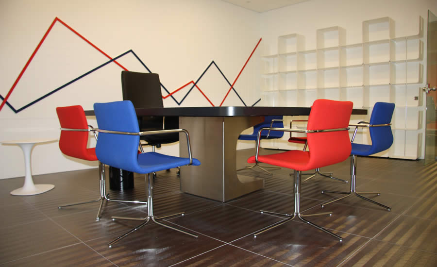 Gli uffici dirigenziali non tradiscono tale concezione: il colore, nella sua scomposizione di matrice neoplastica dai tratti olandesi e russi (da Mondrian a El Lisitskij), disegna mobili che desiderano essere dei giocattoli prima che dei volumi atti a contenere degli oggetti.