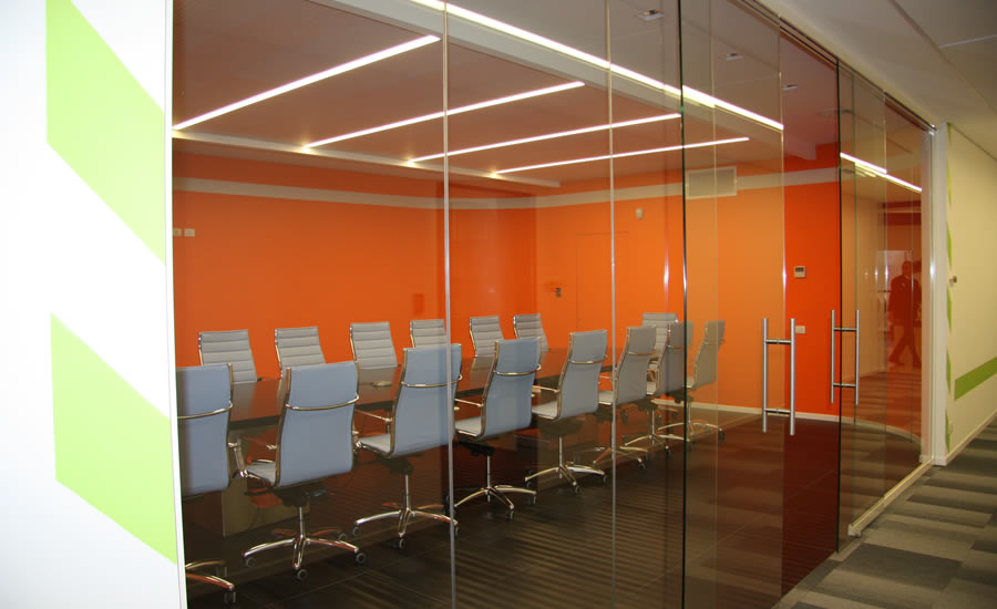 Ecco allora che gli edifici potranno avere un ruolo di presenza anche di notte, senza necessità di essere illuminati dall'esterno: produrranno essi stessi luce e colore, dialogando con la gente e con la città. La reception della società sono segnati dallo snake, il tubo luminoso frutto di un prototipo realizzato internamente, che indica il percorso verso gli uffici e che connota simbolicamente tutto lo spazio. Spazio raccolto in linee sinuose che convergono nell'ovale centrale, sovra illuminato con delle luci fluorescenti.