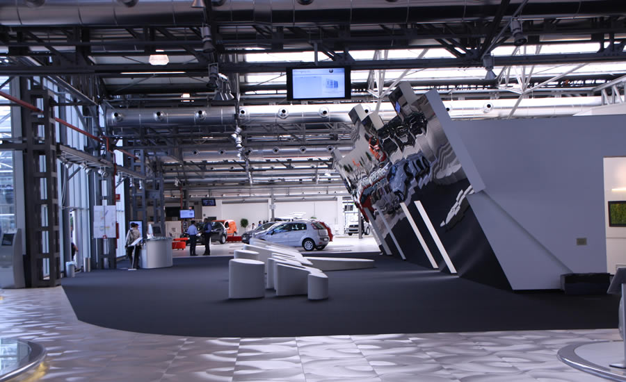 Lo studio GTP ha cercato di tradurre con l'allestimento degli interni, gli aspetti caratterizzanti i marchi dell'azienda, con la quale già da tempo collabora per numerosi stand nei principali Saloni dell'auto e ha sviluppato diversi progetti per gli spazi di vendita. Coniugare memoria storica di un insediamento industriale e il nuovo format richiesto, è la metodologia alla base della strategia progettuale adottata. Lo spazio espositivo risulta essere un luogo aperto, con zone di sosta e di passaggio che si alternano ad aree neutre, interposte ai punti di principale attrazione.