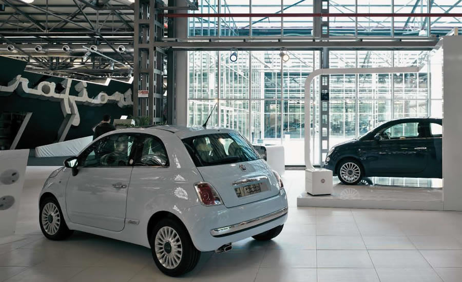 Una tipologia di spazio urbano che conduce alla denominazione di città-outlet della Fiat, grande showroom e area di assistenza tecnica.