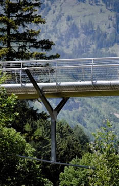 Le strategie per la valorizzazione dell�ambiente, richiedono la progettazione e la realizzazione di strutture non invasive che si inseriscono armoniosamente nel contesto senza disturbare la natura del territorio. E proprio a Ortisei, punto strategico nella parte nord-occidentale delle Dolomiti dell�Alto Adige, dove si apre l�alta Val Gardena, riconosciuta in tutto il mondo come meta escursionistica tra le pi� belle delle Alpi, � stato realizzato un ponte pedonale che collega direttamente la stazione a valle della cabinovia che porta all�Alpe di Siusi con il centro di Ortisei e l�Hotel Cavallino Bianco.