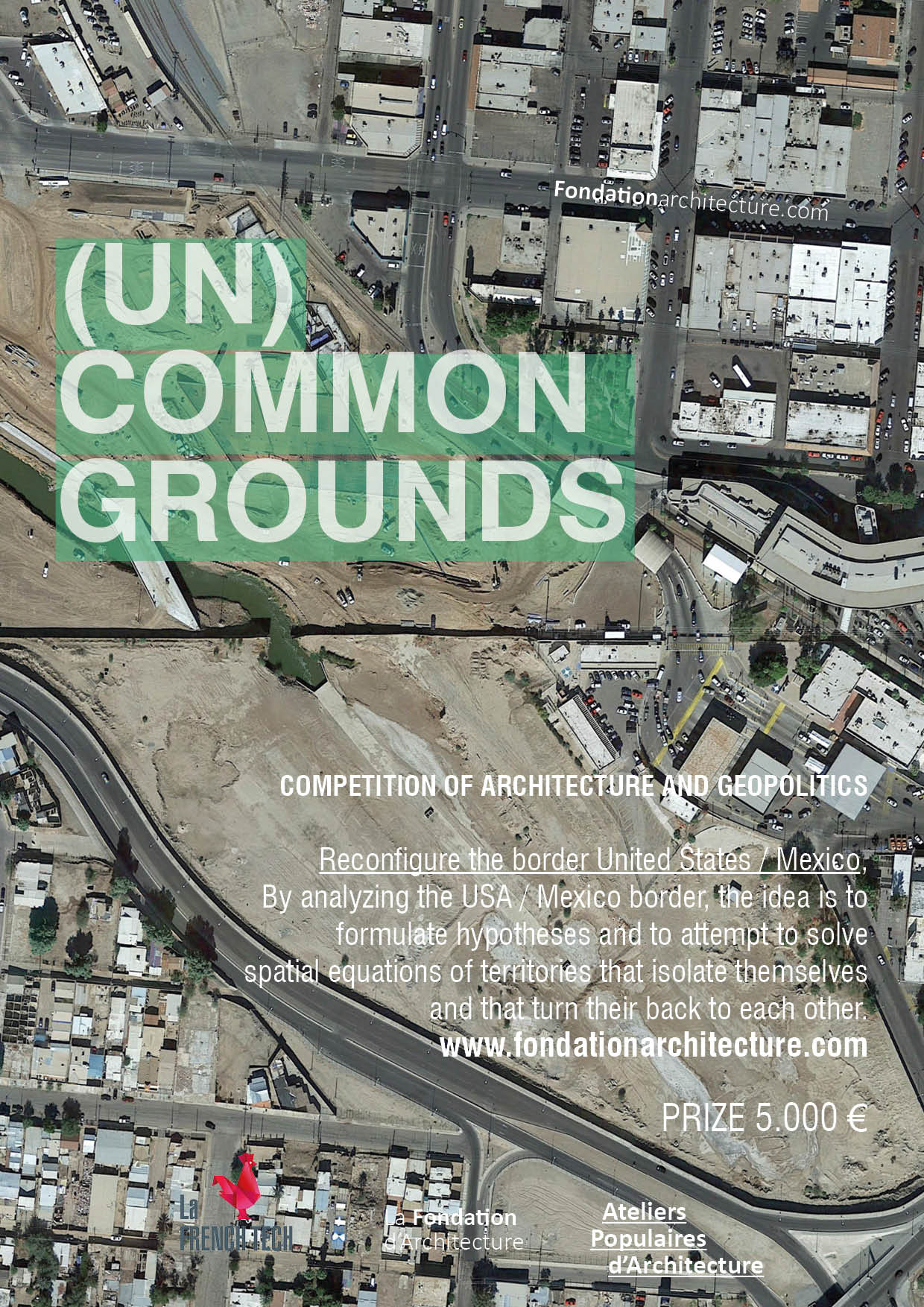 I confini, intesi come luoghi latenti, spazi di mezzo che esprimono la trasposizione spaziale di problematiche urbane, culturali, sociali e politiche, sono l'oggetto del concorso proposto dalla Fondation Architecture. La frontiera tra Stati Uniti e Messico sarà il terreno d'indagine di questa competizione di carattere urbano e sociale.